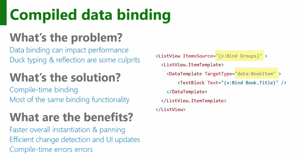Nadszedł jednak dzień, kiedy starzy XAML-owcy (do których się zaliczam) dowiedzą się, że to czego cały czas używali, nie było do końca dobre. Układanie layoutu przy pomocy Grid i StackPanel wydawało się od 2006 roku wygodne, tymczasem inne systemy mobilne i Web oferują także layout relatywny, dość często stosowany. Ma on taką zaletę, że wymaga mniej tagów, co wpływa także na wydajność, prościej definiuje się za jego pomocą stany wizualne, co jest istotne przy zaawansowanym responsive design. Czyli cóż, chcąc robić responsywny XAML z prawdziwego zdarzenia przestawmy się na podejście znane choćby z Androida. To nie koniec zmian w XAML. Czy zawsze chcemy, by animacja towarzyszyła zmianie stanu wizualnego? Można ustawić zerowy czas dyskretnej animacji, ale to zawsze było trochę przekombinowane. W Windows 10 możemy stosować w stanach wizualnych settery, które ustawiają propercje bez animacji. Dopełnieniem responsywności są adaptatywne triggery wyzwalające stany wizualne po przekroczeniu progu szerokości lub wysokości okna wyrażonego w efektywnych pikselach. Czyli dostaliśmy proste media queries z CSS. Dzisiejszy dzień to także uderzenie w podstawę XAML, a mianowicie data binding. Od 2006, a nawet wcześniej data binding był polecany i chwalony. W Windows 10 jest mowa o tym, że może nie być wydajny i że lepiej zastosować nowy, kompilowany data binding, który potrafi prawie wszystko co “standardowy”, a jest wydajniejszy i zgłosi błędy podczas kompilowania aplikacji! XAML w Windows 10 zyskał też kontrolkę SplitView (ostatnio przybliżaną), a także pełną funkcjonalność drag & drop mogącą kojarzyć się w dużym stopniu z WPF. Modernizacji dopełniają nowe transformaty 3D w inspiracji mające coś wspólnego z CSS.
